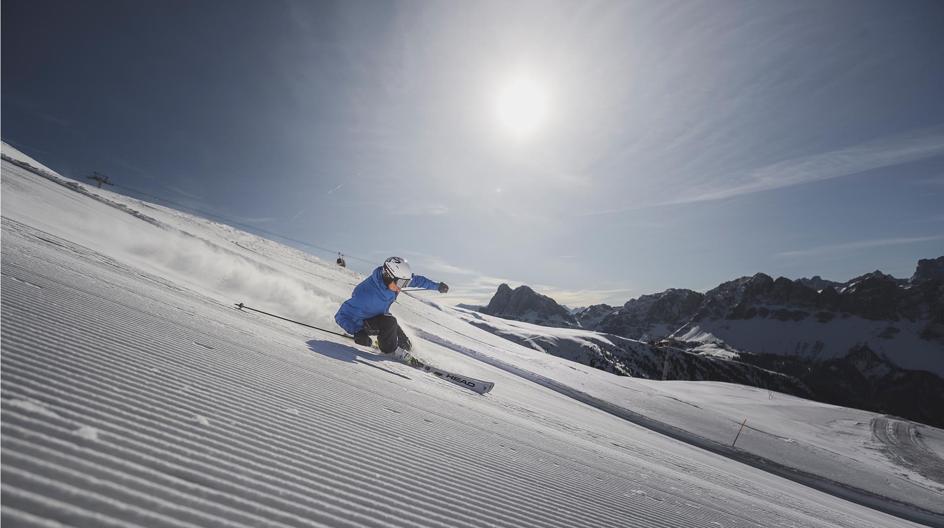 Dolomitenzauber mit Schneegarantie. Anreise Samstag – Abreise Samstag. Mit diesem Angebot möchten wir allen Skifahrern etwas Besonderes bieten. Hier haben Sie die Möglichkeit, in den schönsten Skigebieten der Dolomiten mit Gleichgesinnten, die das sportliche Vergnügen ebenso lieben wie die Schönheit der Bergwelt, Ski zu fahren. Täglich bringt Sie unser Bus, begleitet vom einheimischen Skiführer, zu den schönsten Abfahrten.